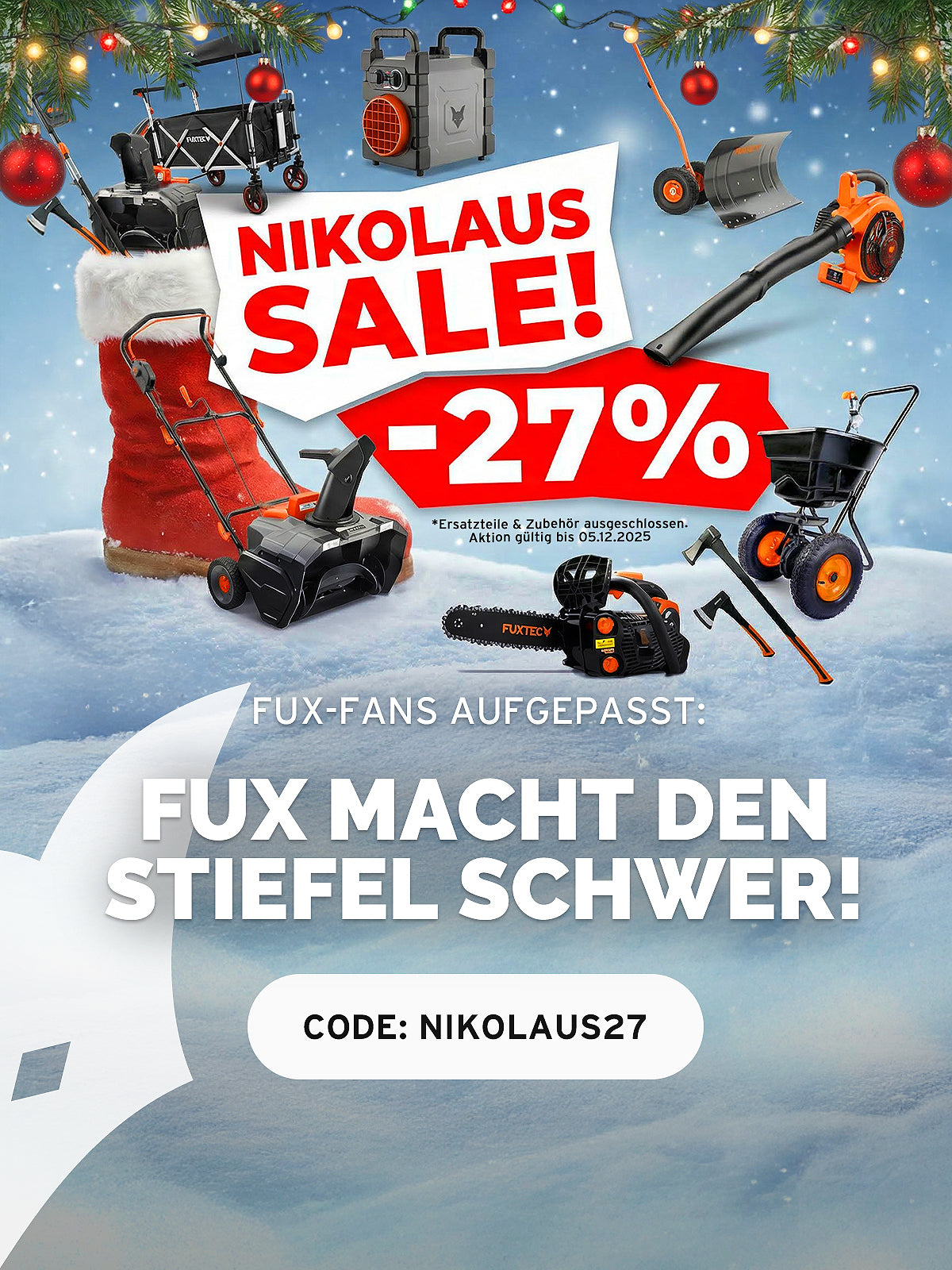 Wenn Du das benötigte Ersatzteil nicht unter dem folgenden Link (und der Navigation in unserem Webshop) findest, steht Dir unser Kundensupport gerne per Mail (info@fuxtec.de) zur Verfügung. Bitte gib hierbei die Typbezeichnung deines Gerätes mit an, so können wir Dir schneller weiterhelfen.