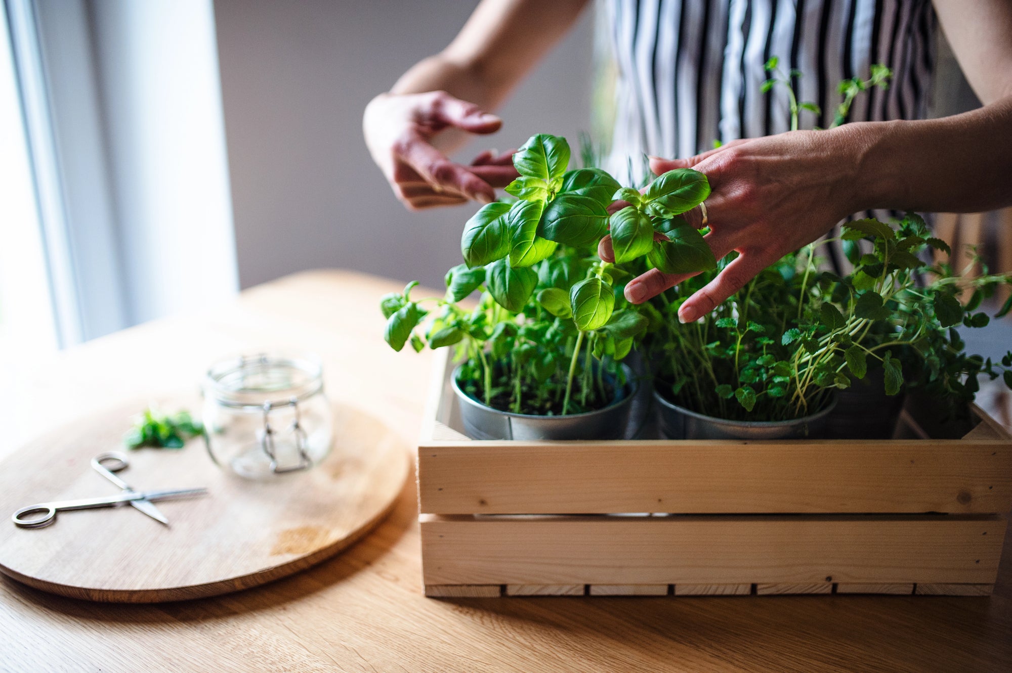 Gegossen wird nur sparsam, damit die Wurzeln nicht faulen. Eine Schale mit Wasser neben die Kräuter sorgt für die nötige Luftfeuchtigkeit. Auch sollten Kräuter regelmäßig auf Schädlinge kontrolliert werden, das gehört zur Winterpflege.