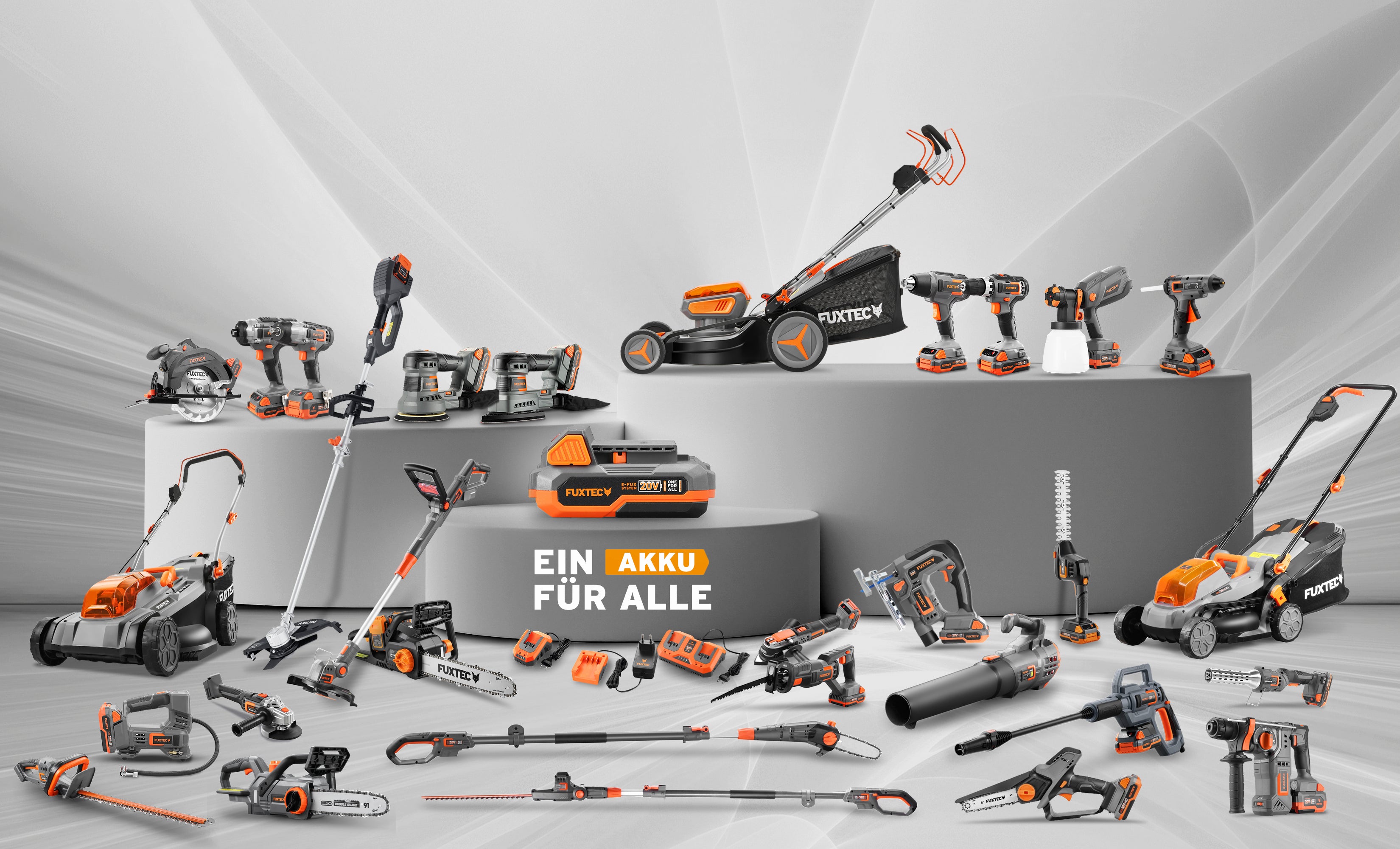 FUXTEC bietet eine große Auswahl an leistungsstarken akkubetriebenen Gartengeräten wie Rasenmähern, Heckenscheren, Rasentrimmern und Kettensägen an.
