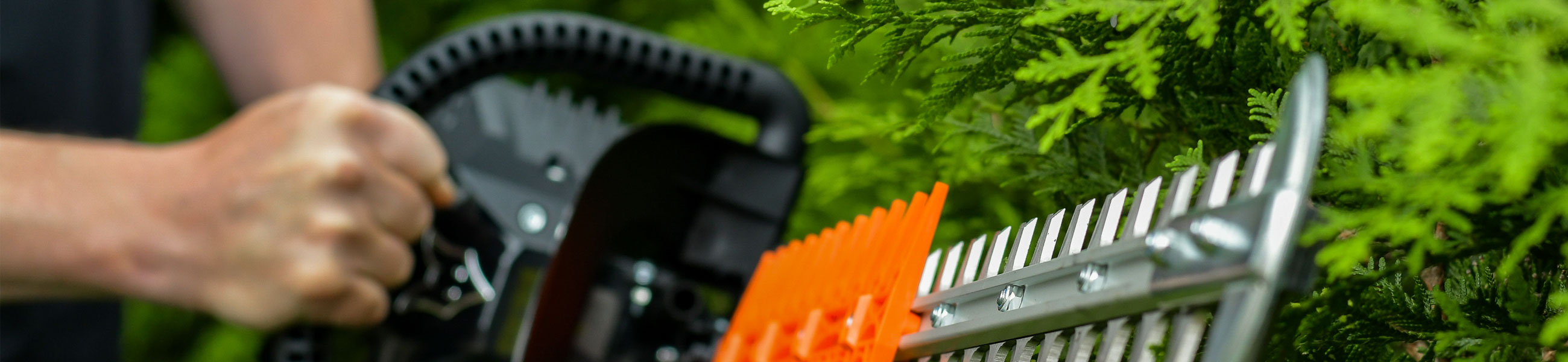 Benzin-Heckenscheren, wie die im Fuxtec-Shop, besitzen gegenläufige, beidseitig schneidende Messer und bieten daher eine bessere Schnittqualität. Denn: Beide Schneiden sind in Bewegung und sorgen für einen präzisen und möglichst glatten Schnitt.