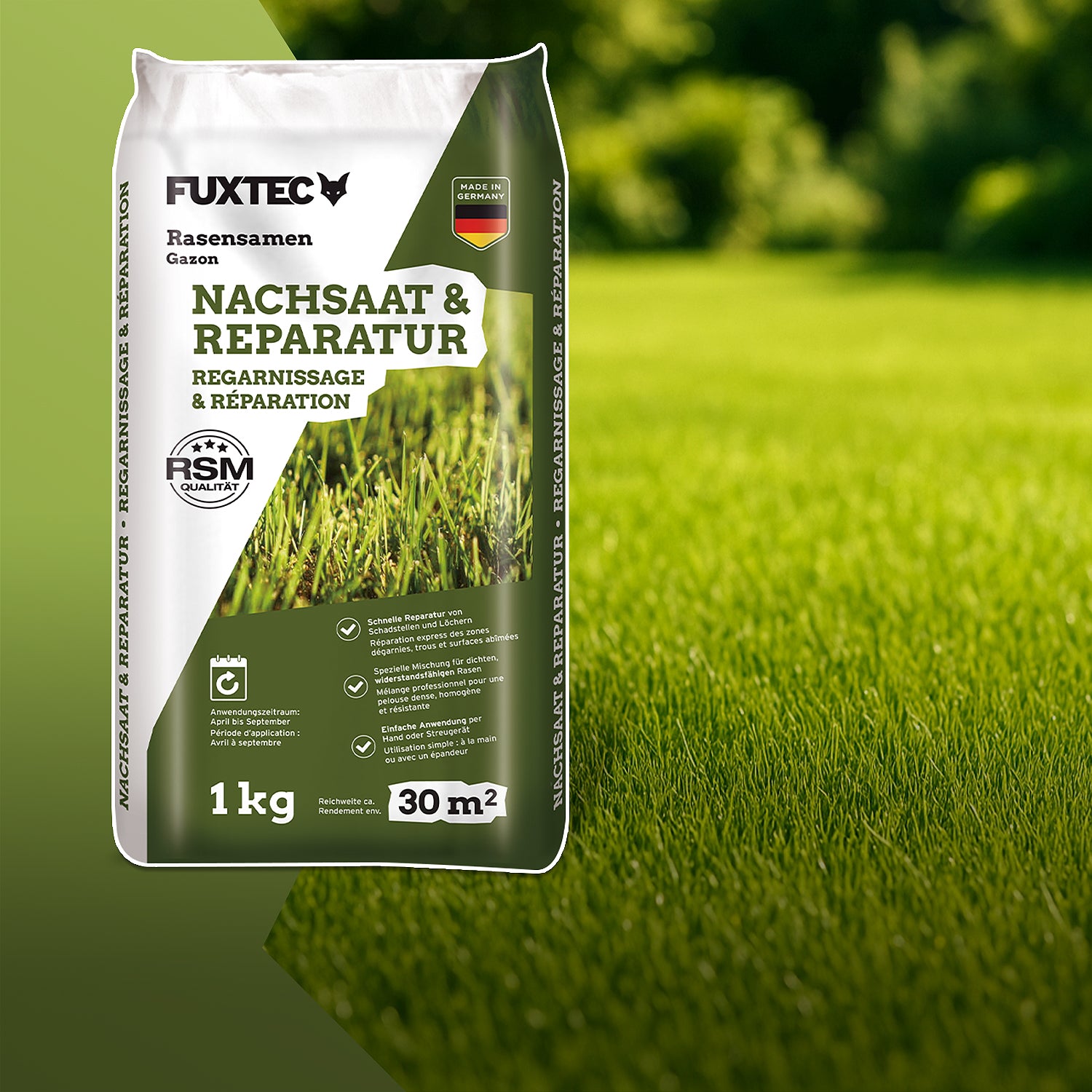 Ein schöner Rasen beginnt mit der Aussaat und mit der optimalen Vorbereitung des Bodens. Die spätere Rasenfläche muss zunächst aufgelockert werden. Bei FUXTEC findest Du die dafür notwendigen Gartengeräte wie eine Motorhacke oder Vertikutierer & Rasenlüfter. Bei Bedarf sollten feste Böden noch mit etwas Sand vermischt werden, damit bei der Bewässerung das Wasser besser versickern kann, die Samen nicht ertrinken und die Halme später nicht in Staunässe stehen. Ausgesät wird am besten im April und Mai, wenn der Boden eine durchgängige Temperatur von mindestens 8°C aufweist. Nachsaat ist das ganze Jahr über möglich. Du kannst das Saatgut selbstverständlich per Hand aussäen. Ein gleichmäßigeres Aussaat- und später Wuchsbild erhältst Du allerdings, wenn Du auf ein Streugerät zurückgreifst. Unser batteriebetriebener Universalstreuer oder Streuwagen lässt Dich das Streuvolumen nach Bedarf einstellen. So hast Du später einen Rasen, der gleichmäßig üppig, grün und ohne kahle Stellen wächst.