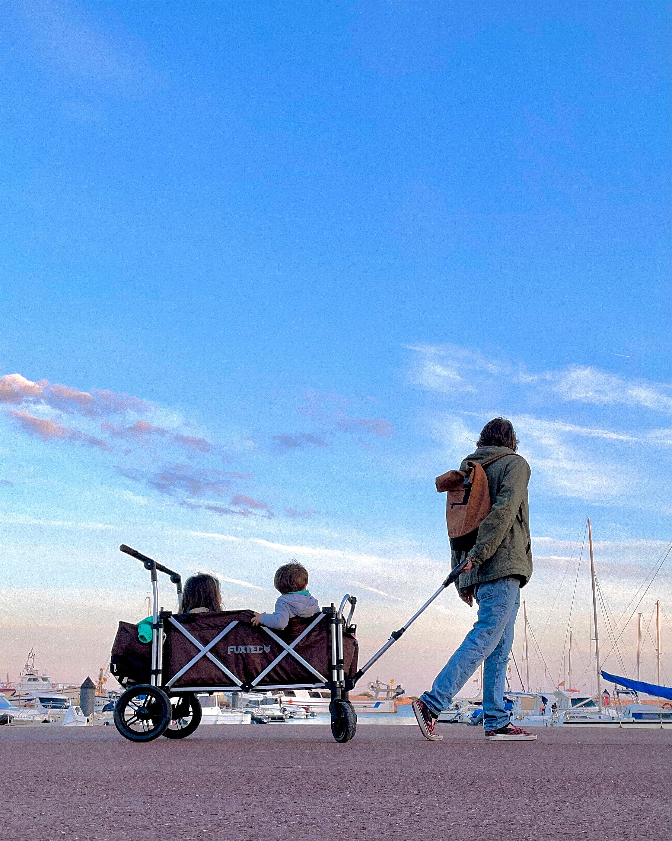 Kein herkömmlicher Bollerwagen wie jeder andere, sondern vom TÜV Süd explizit zur Beförderung von Kindern zertifiziert.
