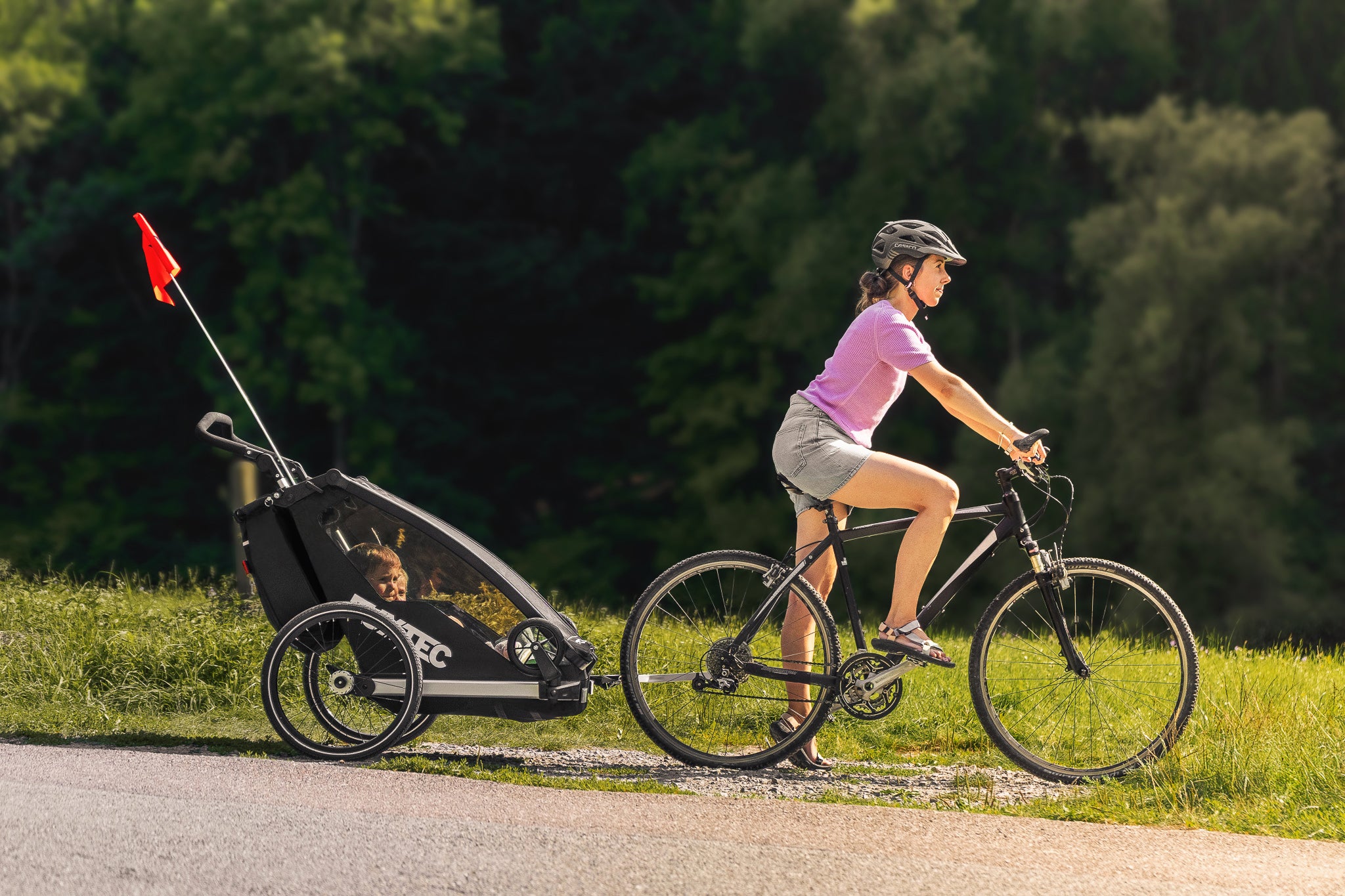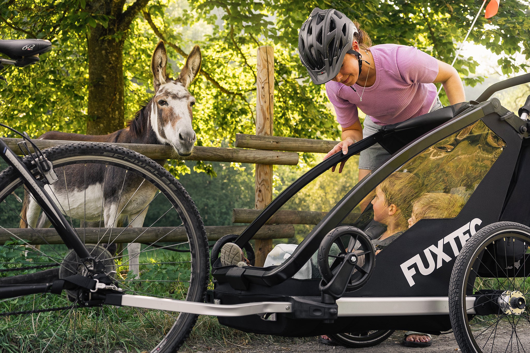 Ein sportlicher Fahrradanhänger/Jogger für bis zu zwei Kids, welcher auch im Handumdrehen zu einem Buggy umgerüstet werden kann.