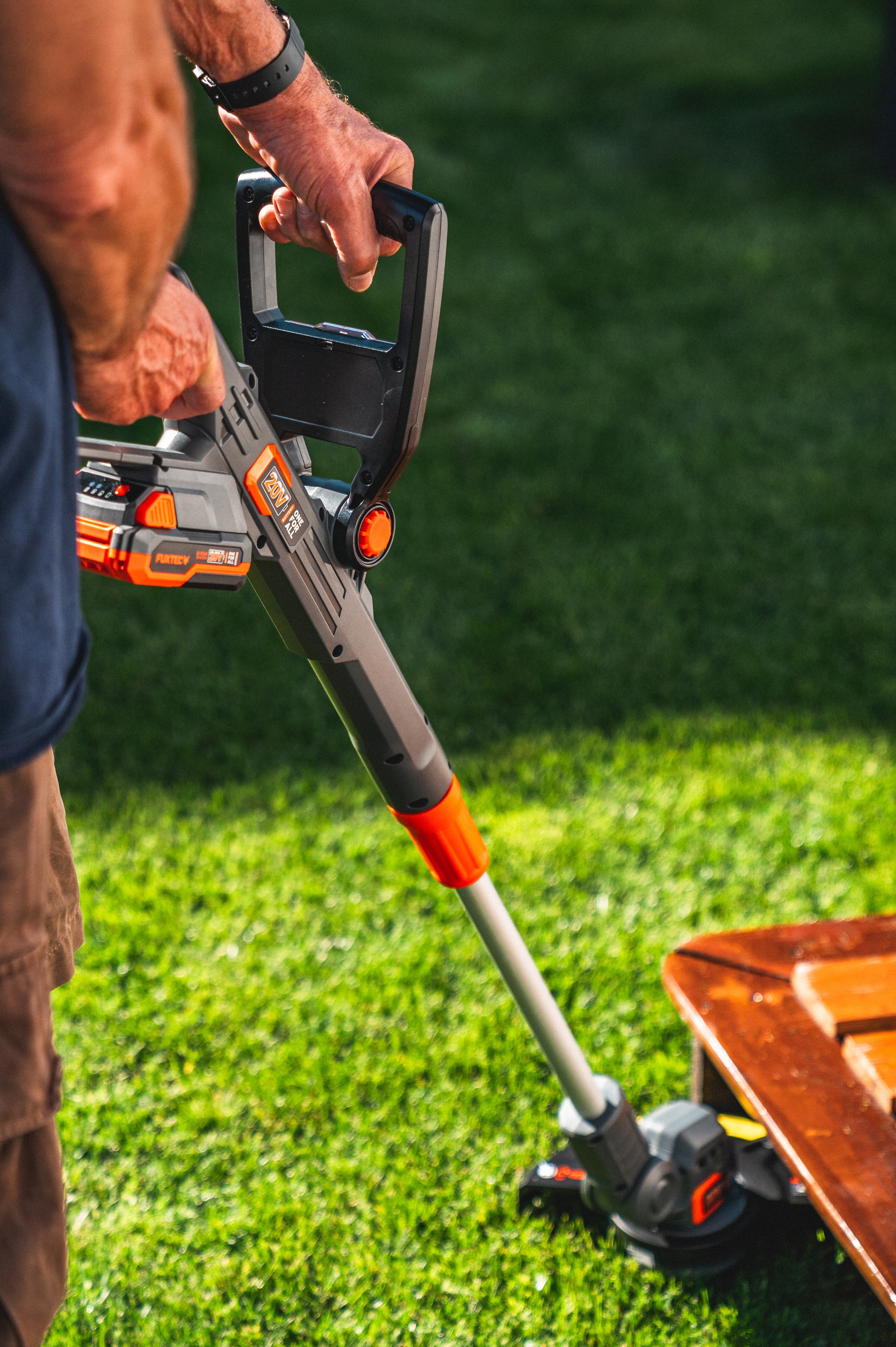 Die Motorsense hat eine Schnittbreite von 25 cm und 7000 Umdrehung/Min für schnellen Arbeitsfortschritt. Verlängerung des Teleskopstiels für ein ergonomisches Arbeiten bei jedem Projekt.
