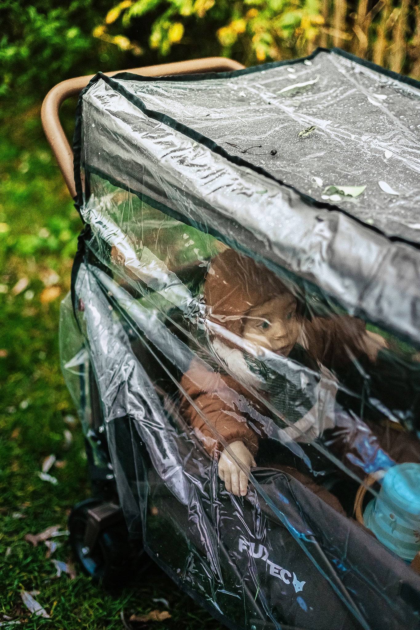 Am meisten Spaß macht ein Ausflug natürlich bei strahlendem Sonnenschein. Aber auch bei schlechtem Wetter muss mit dem faltbaren Bollerwagen niemand auf einen tollen Ausflug verzichten. Ein transparenter Regenschutz kann bei Bedarf einfach über den Wagen gestülpt werden, sodass die kleinen Fahrgäste jederzeit vor Regen geschützt sind.