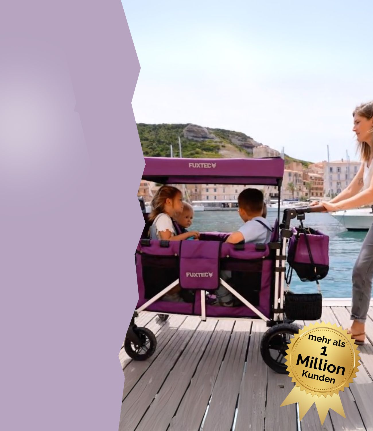 In einem Bollerwagen haben problemlos ein oder zwei kleine Kinder Platz. Einige Modelle sind mit Doppelsitzen und Sicherheitsgurten direkt für mehrere Kinder ausgelegt. Der faltbare 4-Sitzer von FUXTEC eignet sich auch für den Transport von bis zu vier Kindern. Neben einer optimalen Größe und einem nicht zu hohen Gewicht ist eine gute Federung bei Bollerwagen für zwei Kinder entscheidend.